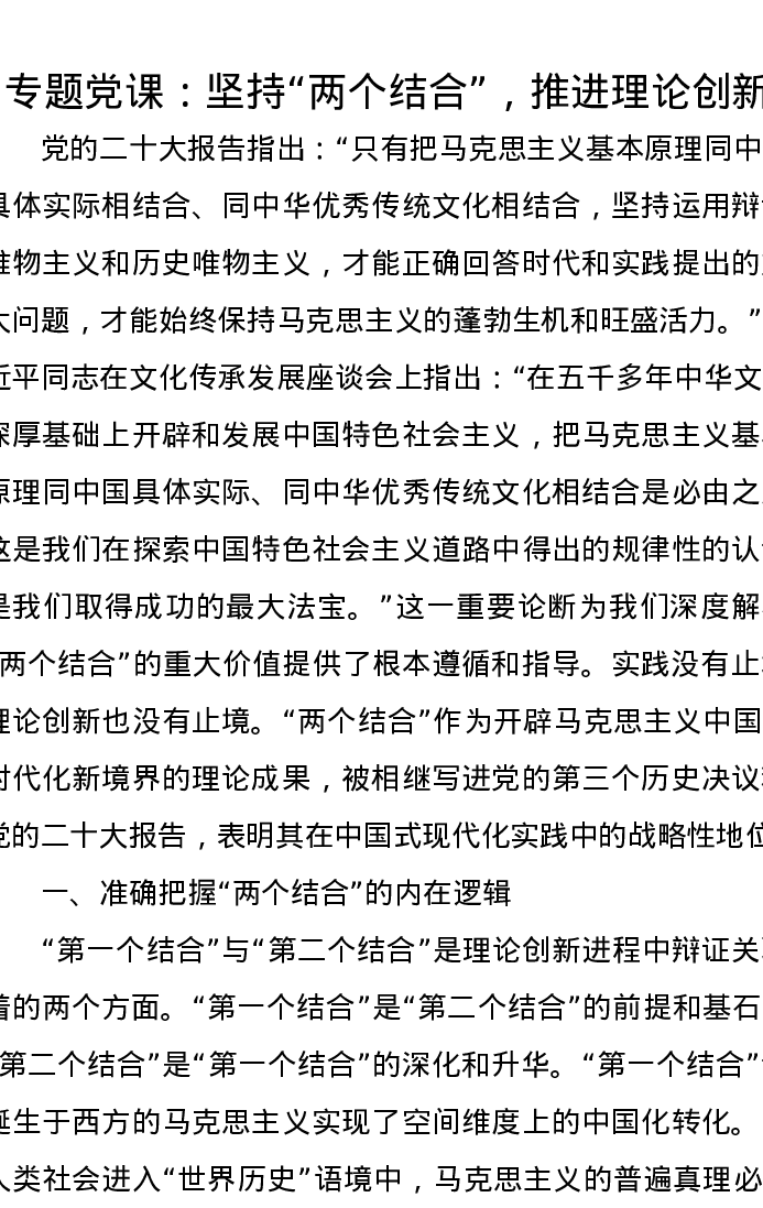 专题党课:坚持“两个结合”,推进理论创新