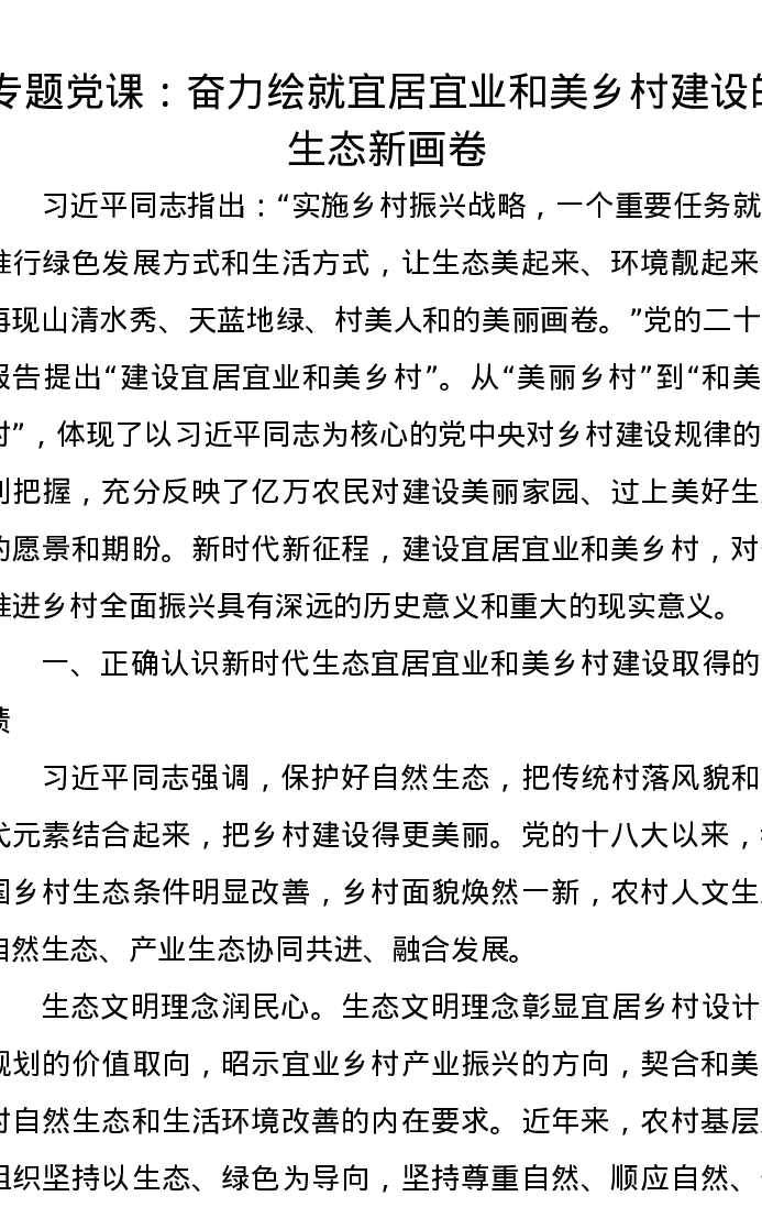 专题党课讲稿:奋力绘就宜居宜业和美乡村建设的生态新画卷