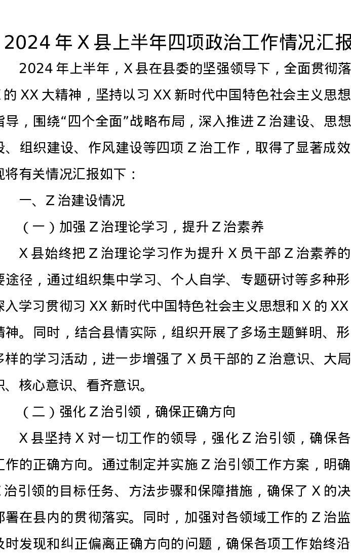 2024年X县上半年四项政治工作情况汇报