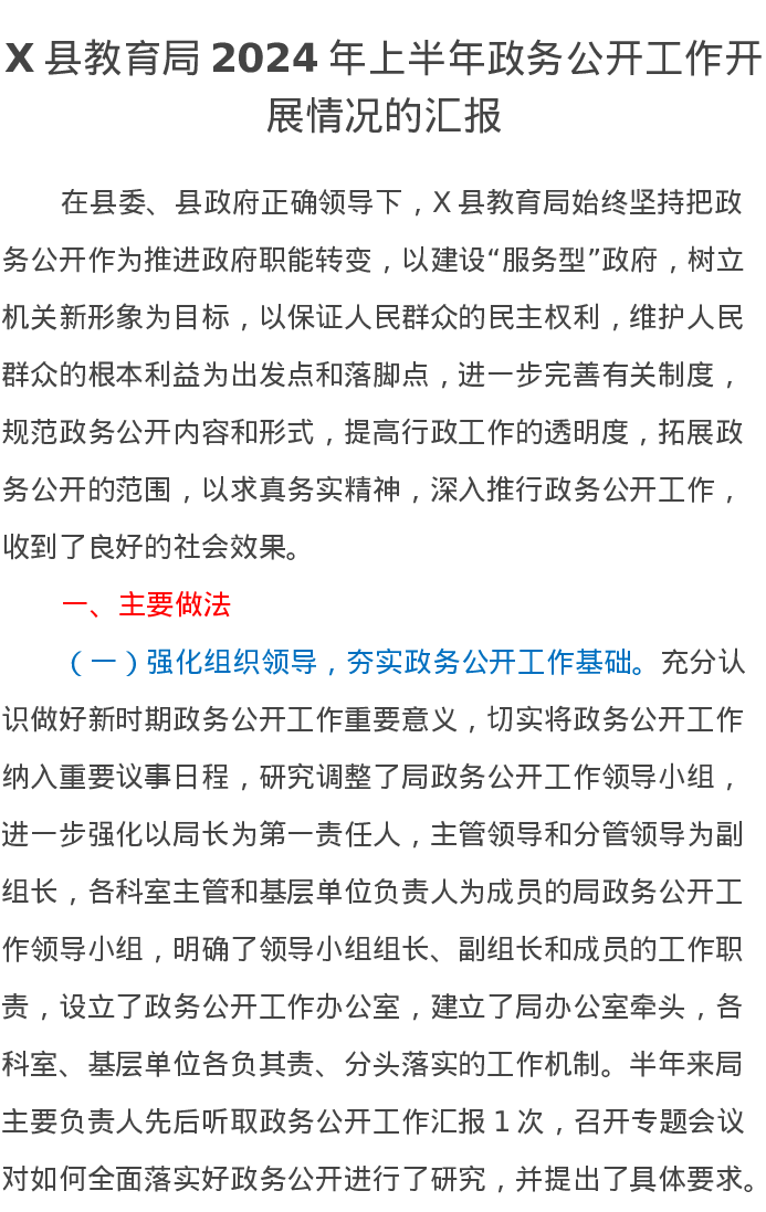X县教育局2024年上半年政务公开工作开展情况的汇报