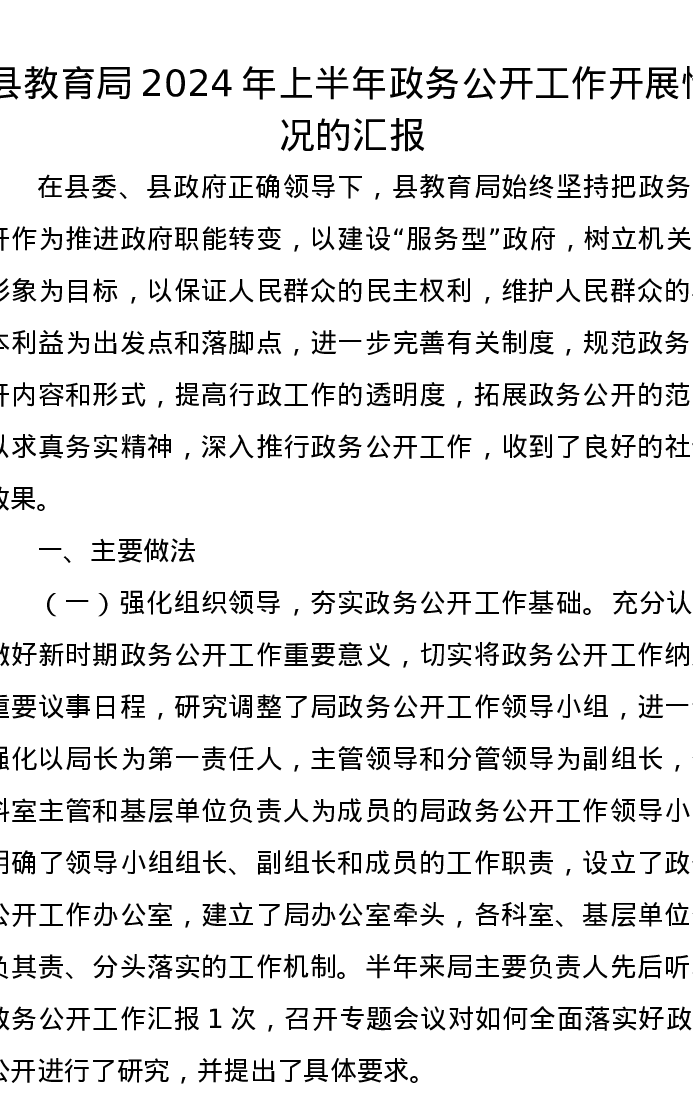 县教育局2024年上半年政务公开工作开展情况的汇报