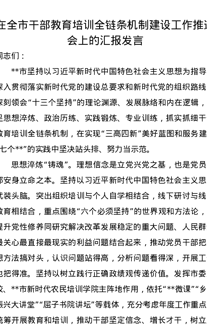 在全市干部教育培训全链条机制建设工作推进会上的汇报发言