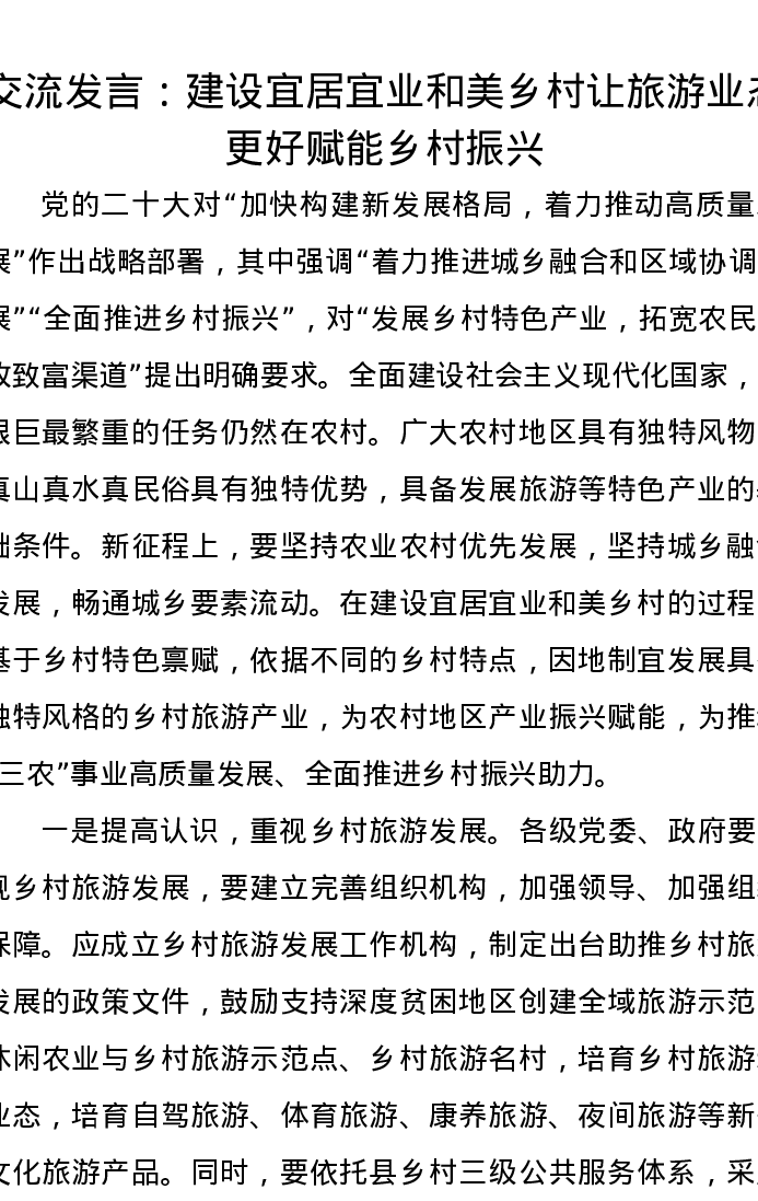 交流发言:建设宜居宜业和美乡村让旅游业态更好赋能乡村振兴