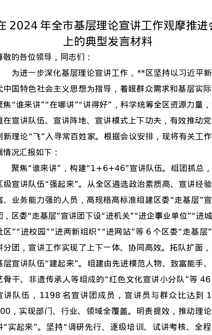 在2024年全市基层理论宣讲工作观摩推进会上的典型发言材料