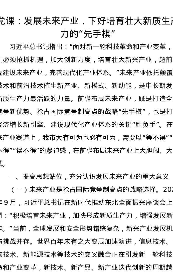 党课讲稿:发展未来产业,下好培育壮大新质生产力的“先手棋”