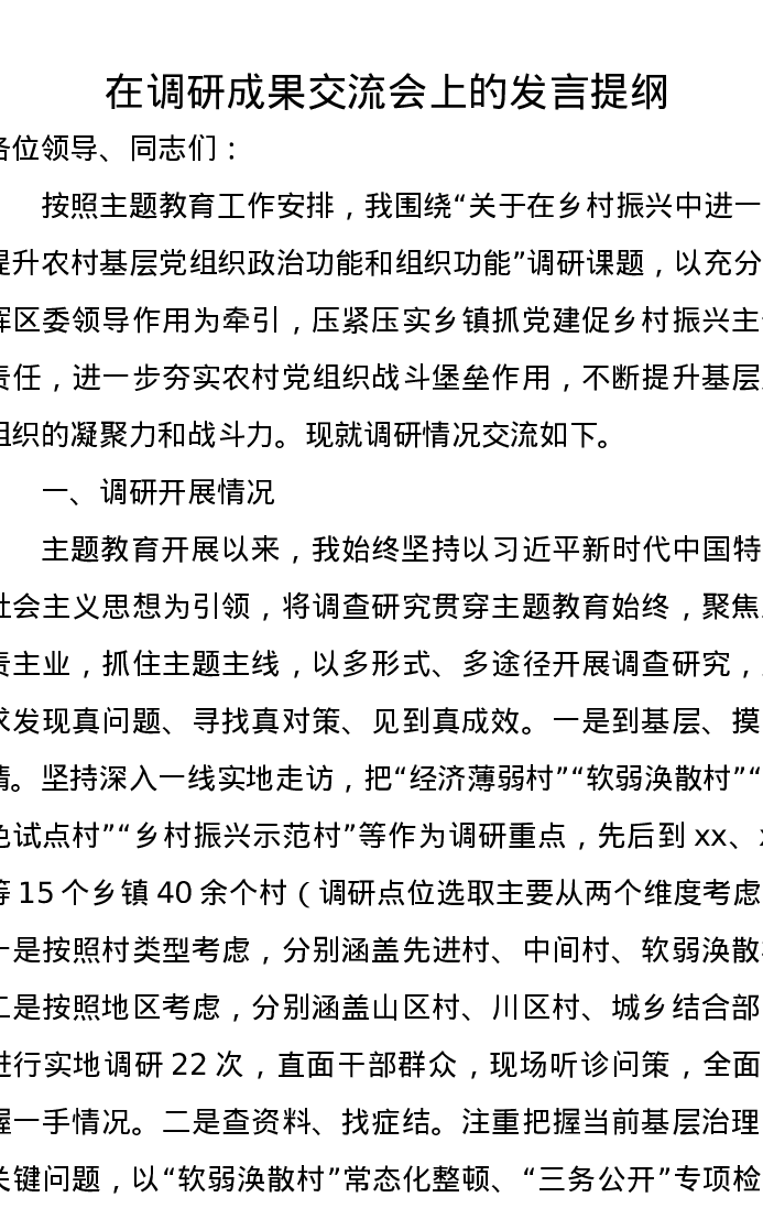 在调研成果交流会上的发言提纲