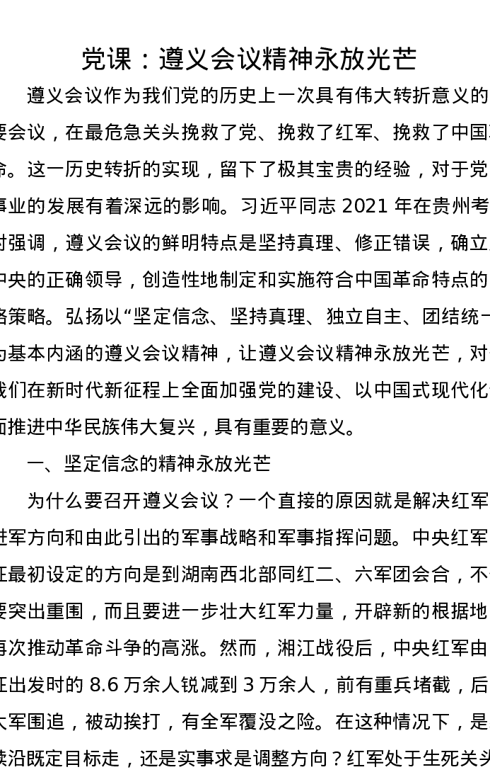 党课:遵义会议精神永放光芒