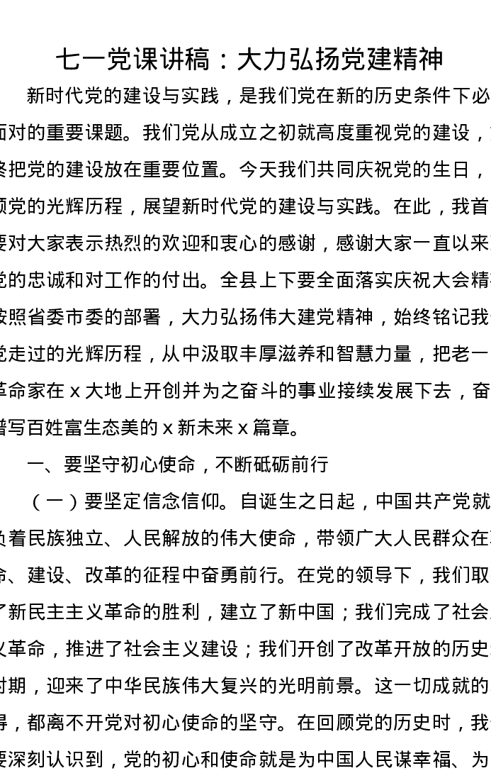 七一党课讲稿:大力弘扬党建精神