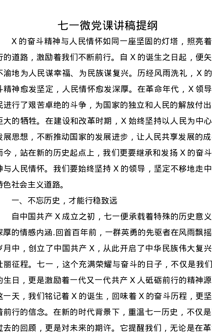 七一微党课讲稿提纲