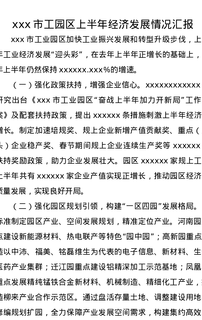 xxx市工园区上半年经济发展情况汇报