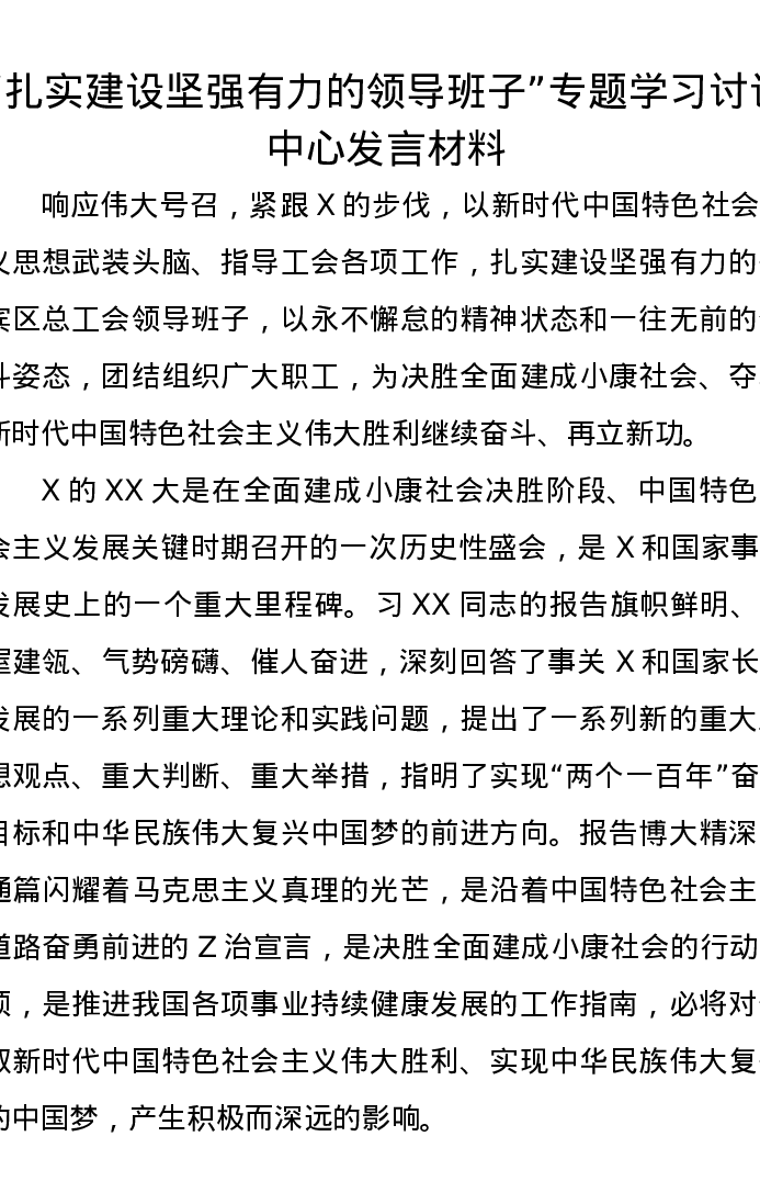 “扎实建设坚强有力的领导班子”专题学习讨论中心发言材料