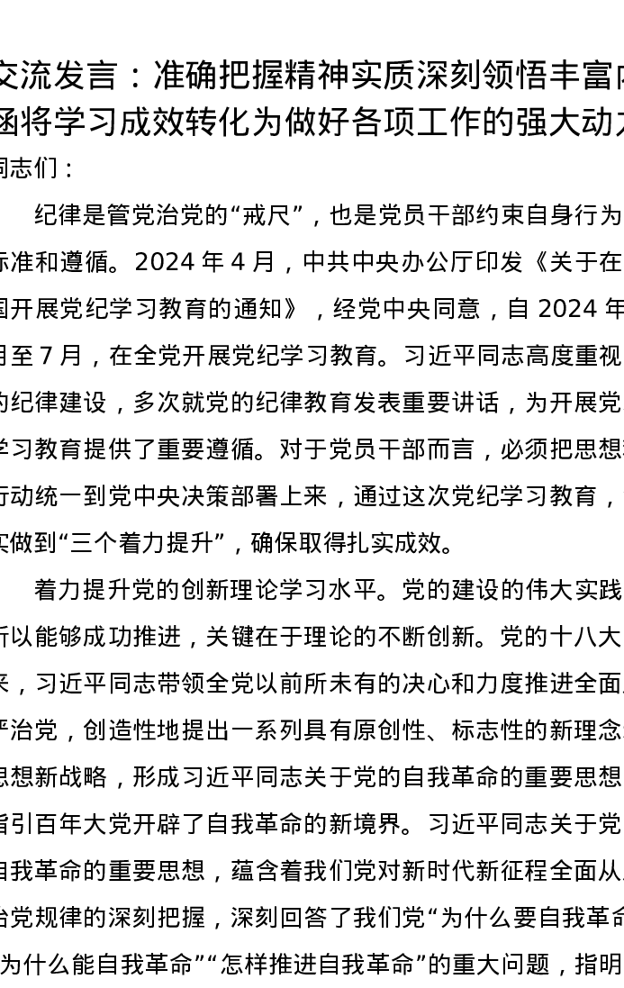 交流发言:准确把握精神实质深刻领悟丰富内涵将学习成效转化为做好各项工作的强大动力