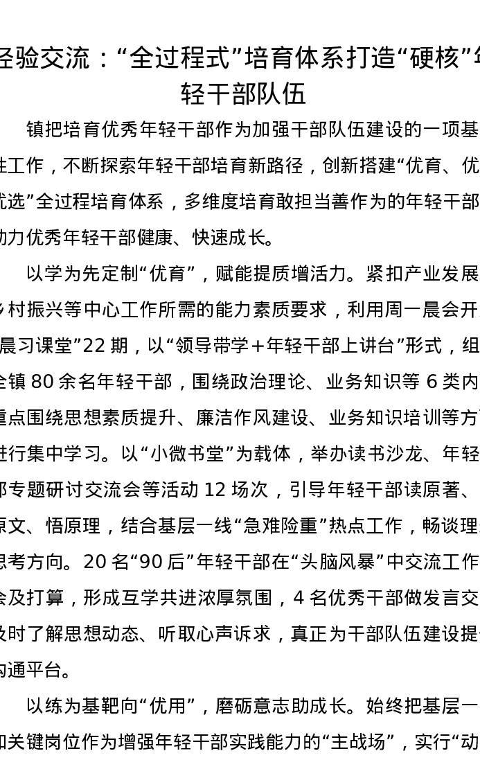 经验交流:“全过程式”培育体系打造“硬核”年轻干部队伍