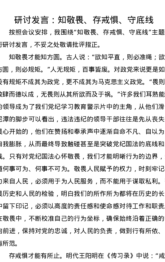 研讨发言:知敬畏、存戒惧、守底线