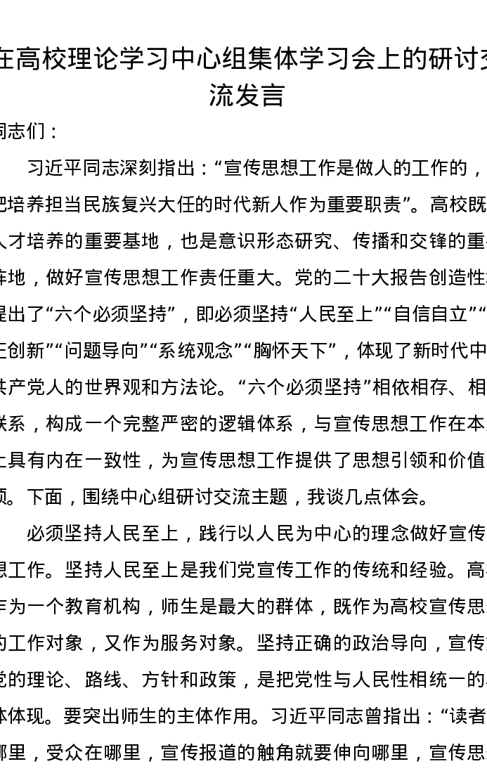 在高校理论学习中心组集体学习会上的研讨交流发言