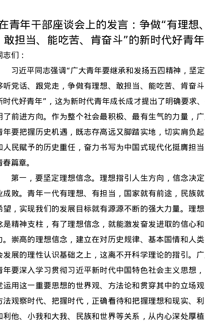 在青年干部座谈会上的发言:争做“有理想、敢担当、能吃苦、肯奋斗”的新时代好青年