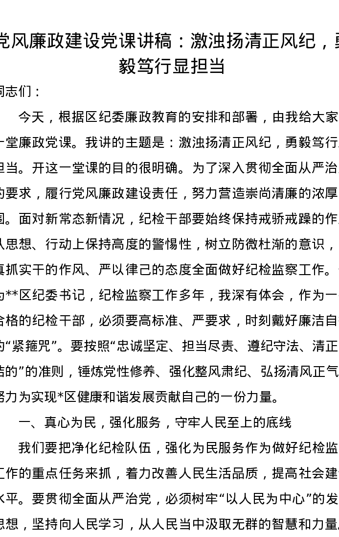 党风廉政建设党课讲稿:激浊扬清正风纪,勇毅笃行显担当