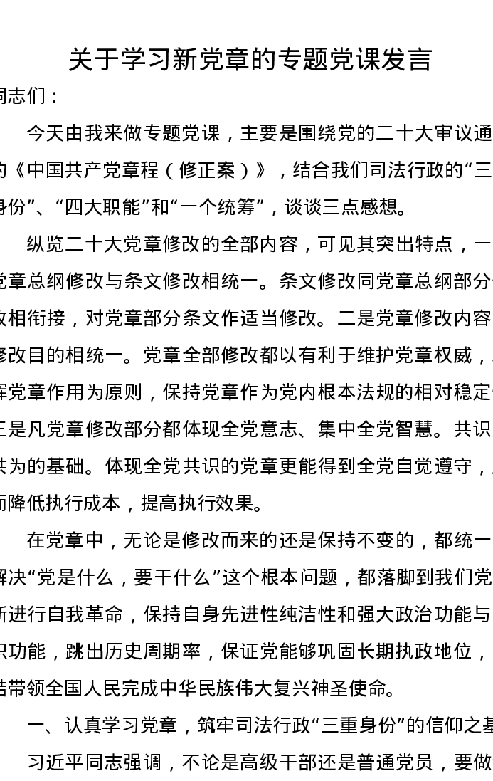 关于学习新党章的专题党课发言