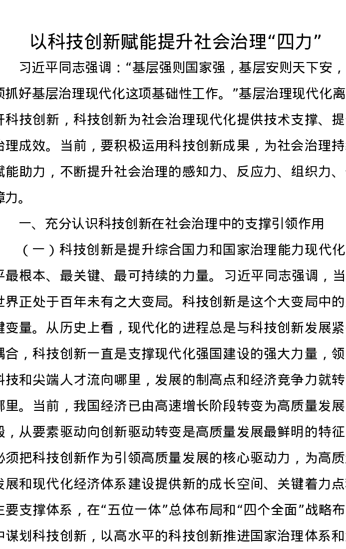 讲稿:以科技创新赋能提升社会治理“四力”
