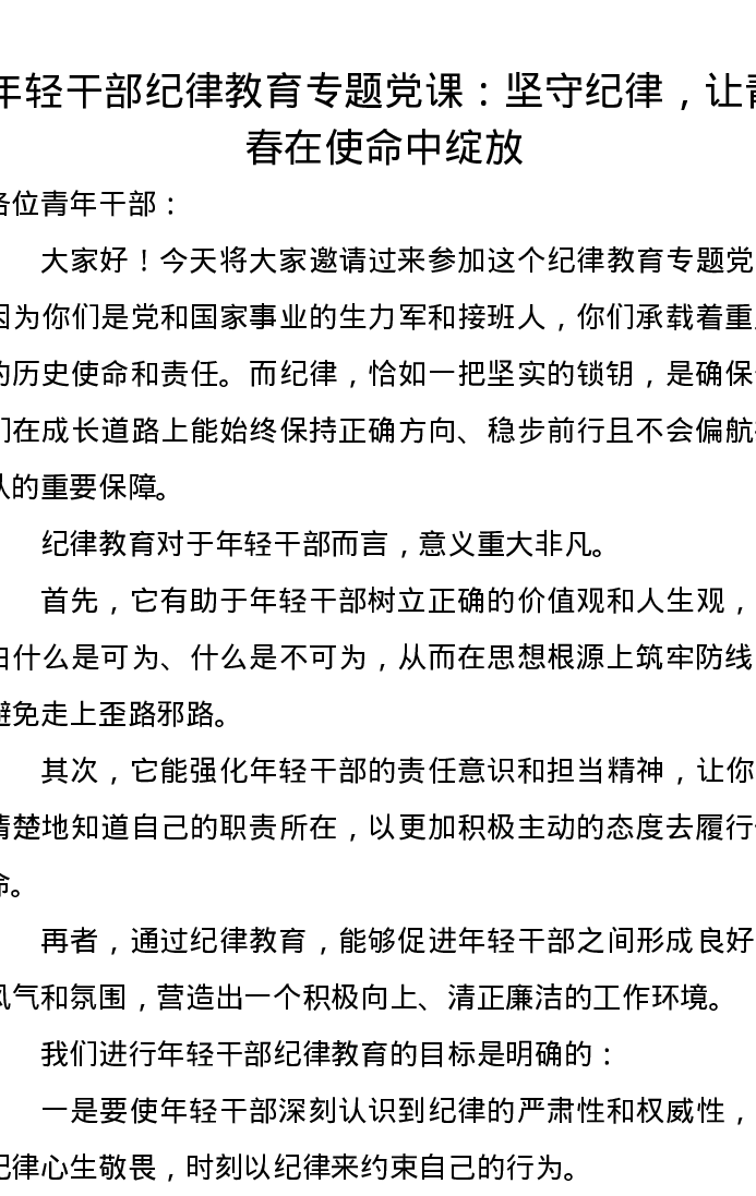 年轻干部纪律教育专题党课:坚守纪律,让青春在使命中绽放