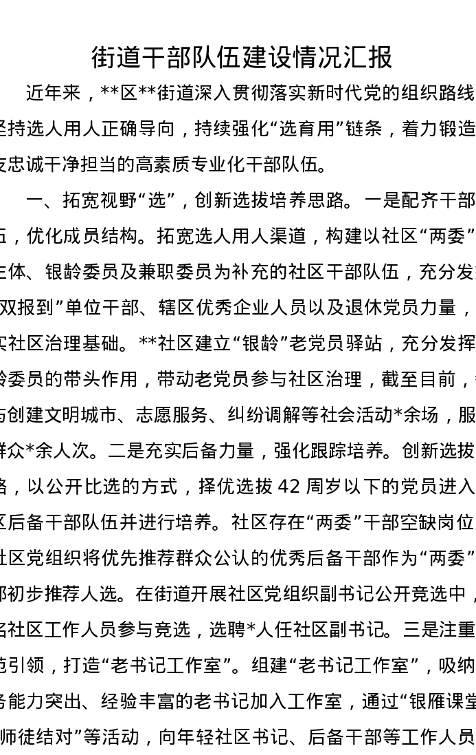 街道干部队伍建设情况汇报