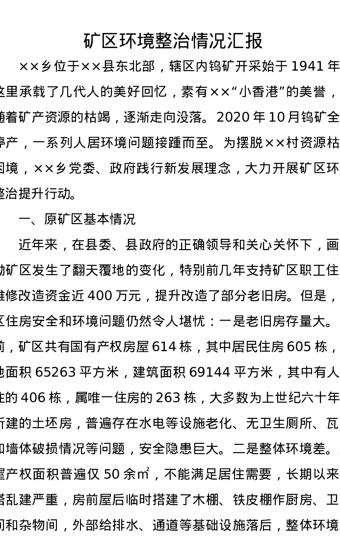 矿区环境整治情况汇报