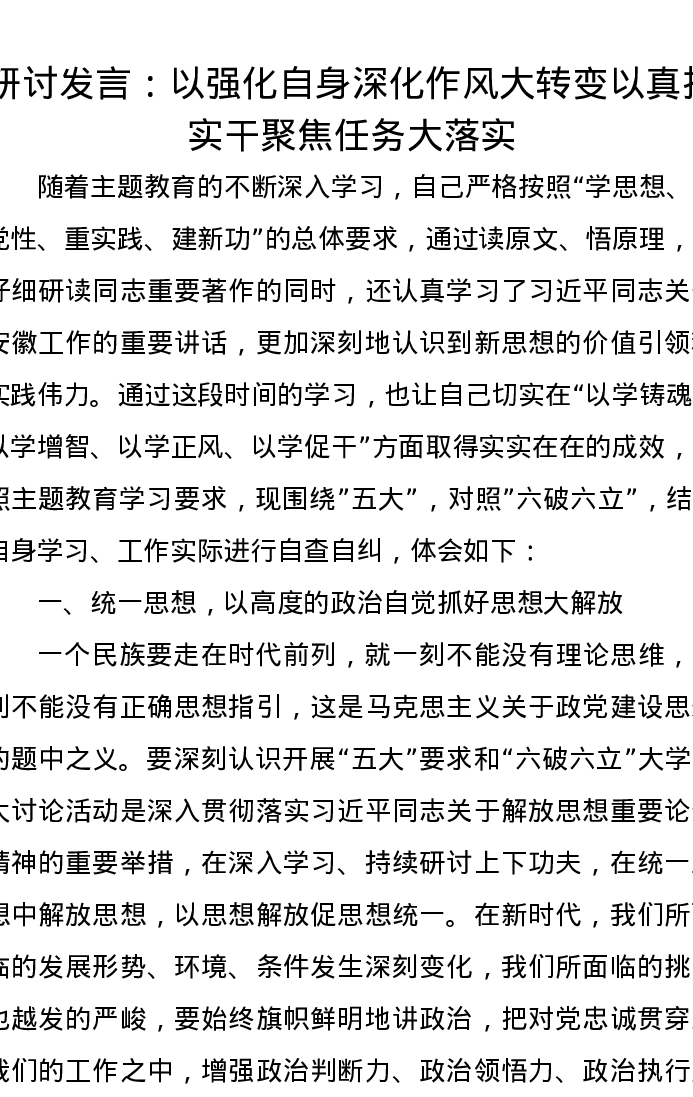 研讨发言:以强化自身深化作风大转变以真抓实干聚焦任务大落实