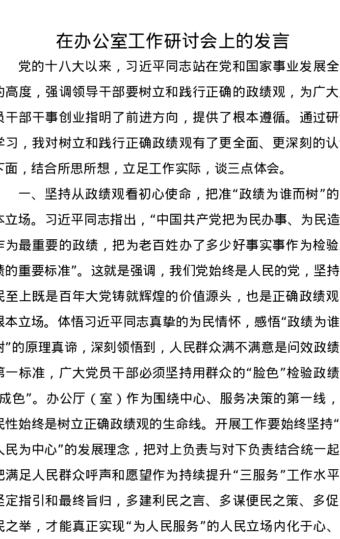 在办公室工作研讨会上的发言