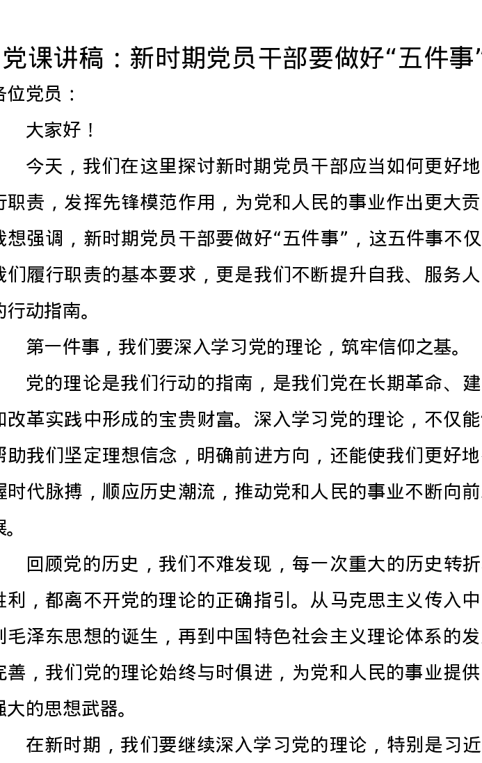 党课讲稿:新时期党员干部要做好“五件事”