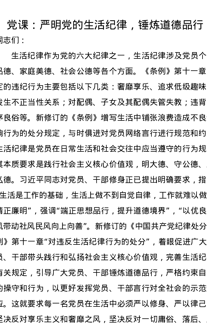 党课讲稿:严明党的生活纪律,锤炼道德品行