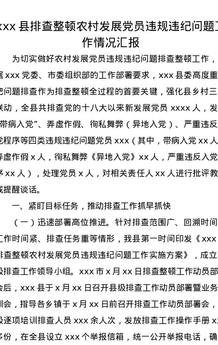xxx县排查整顿农村发展党员违规违纪问题工作情况汇报
