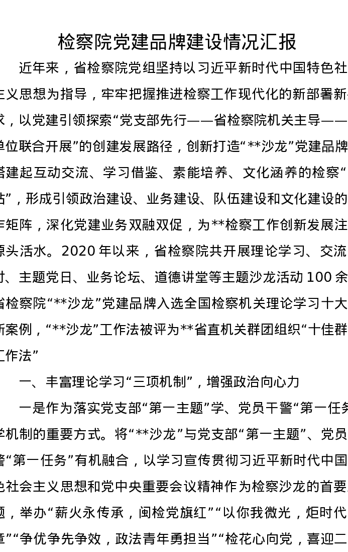 检察院党建品牌建设情况汇报