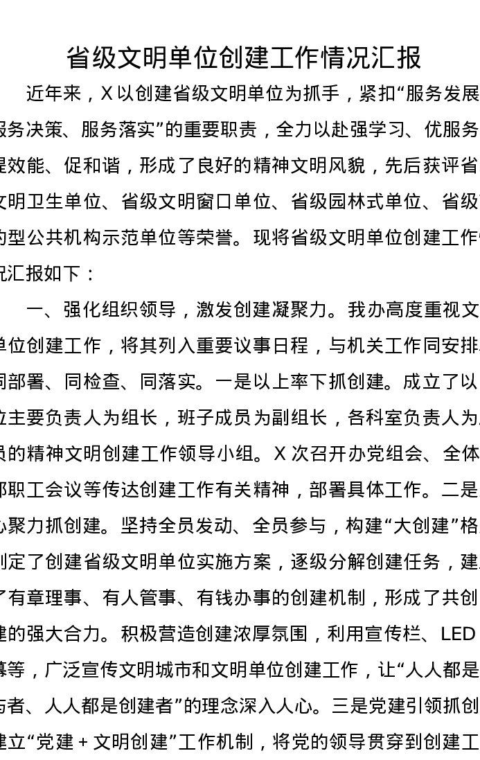 省级文明单位创建工作情况汇报