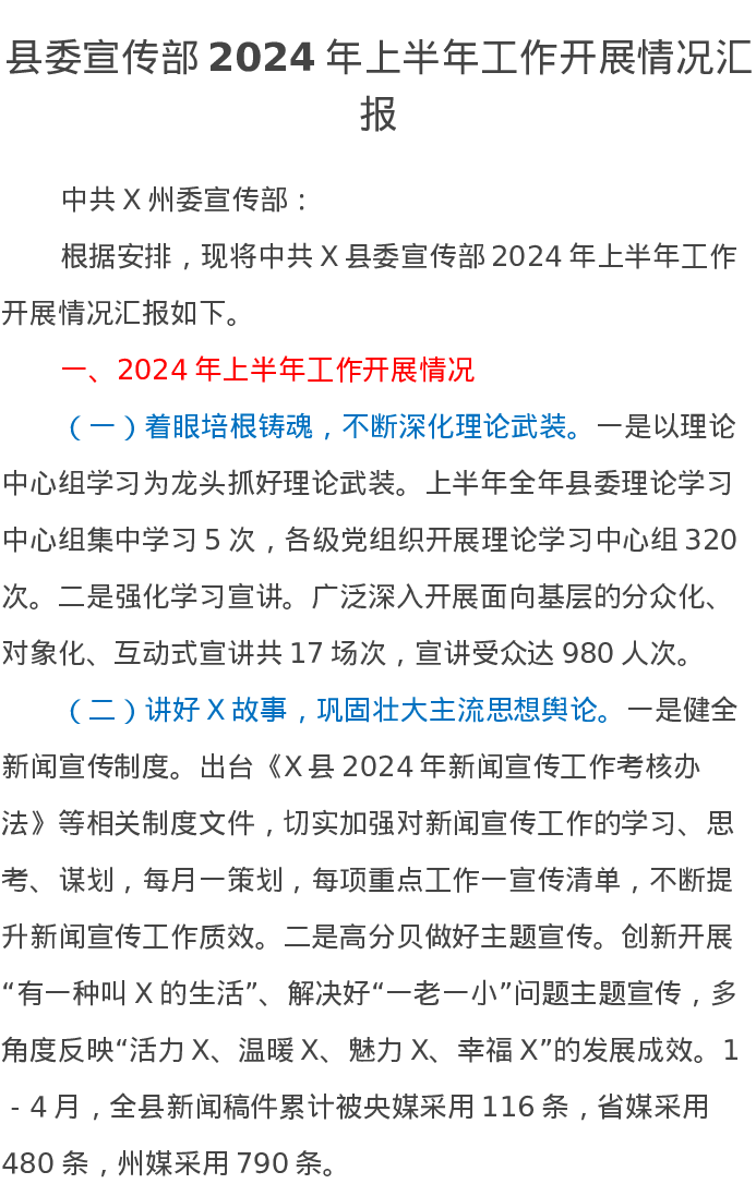 县委宣传部2024年上半年工作开展情况汇报