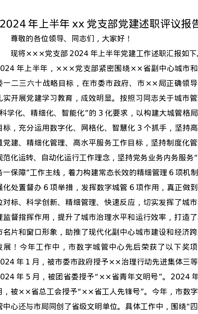 2024年上半年xx党支部党建述职评议报告