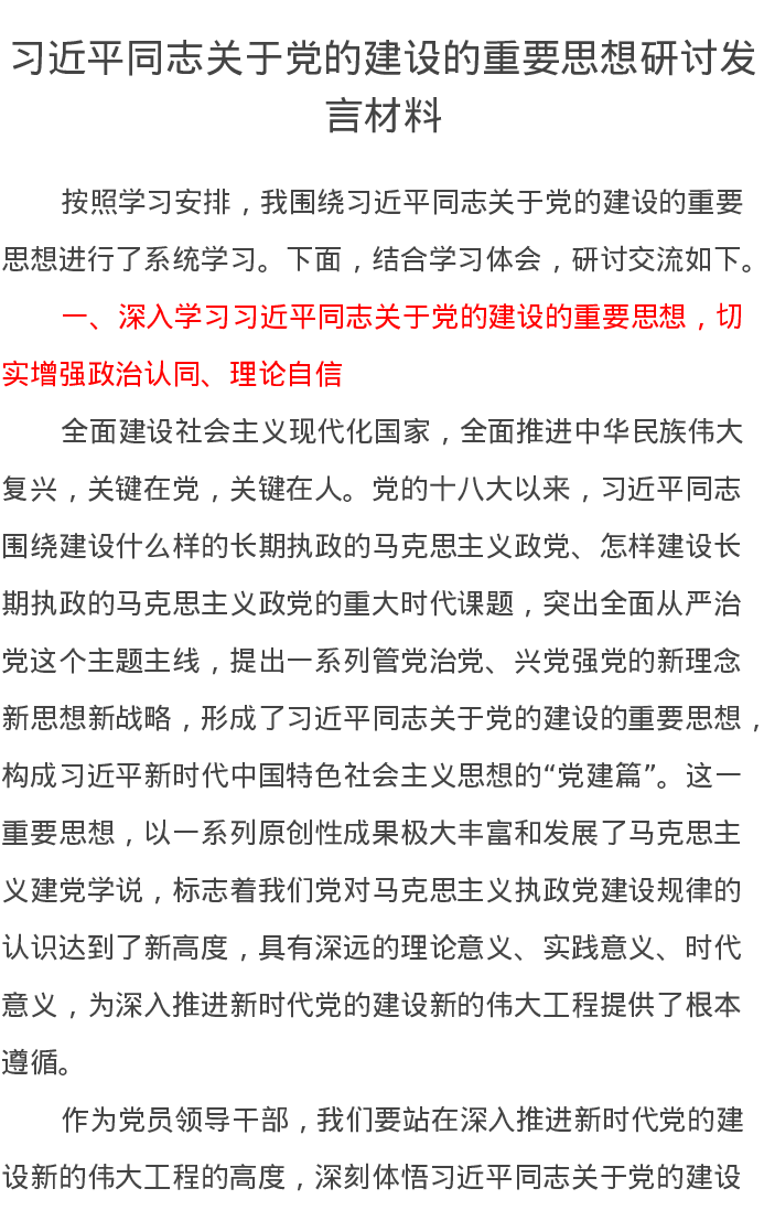 习近平总书记关于党的建设的重要思想研讨发言材料