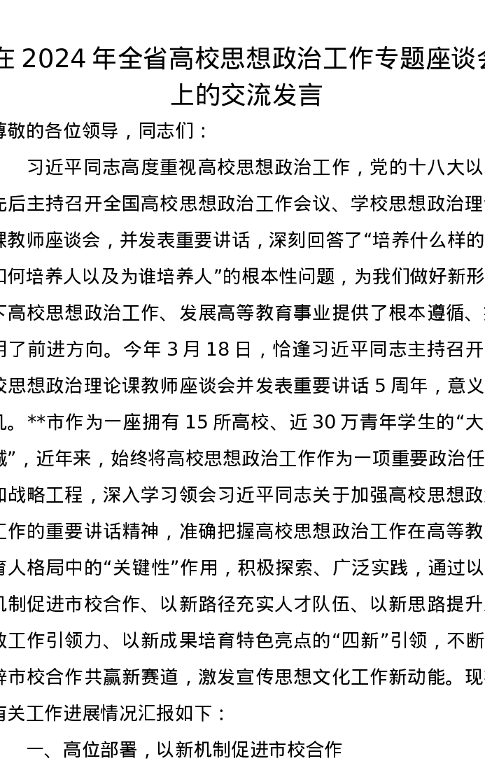 在2024年全省高校思想政治工作专题座谈会上的交流发言