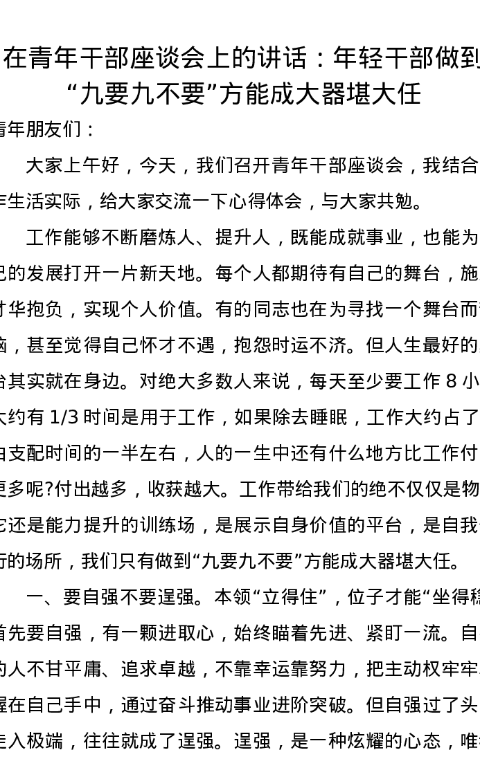 在青年干部座谈会上的讲话:年轻干部做到“九要九不要”方能成大器堪大任
