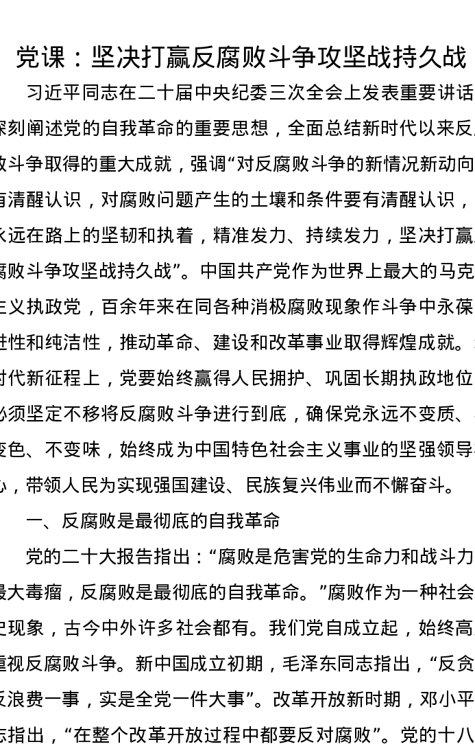 党课:坚决打赢反腐败斗争攻坚战持久战