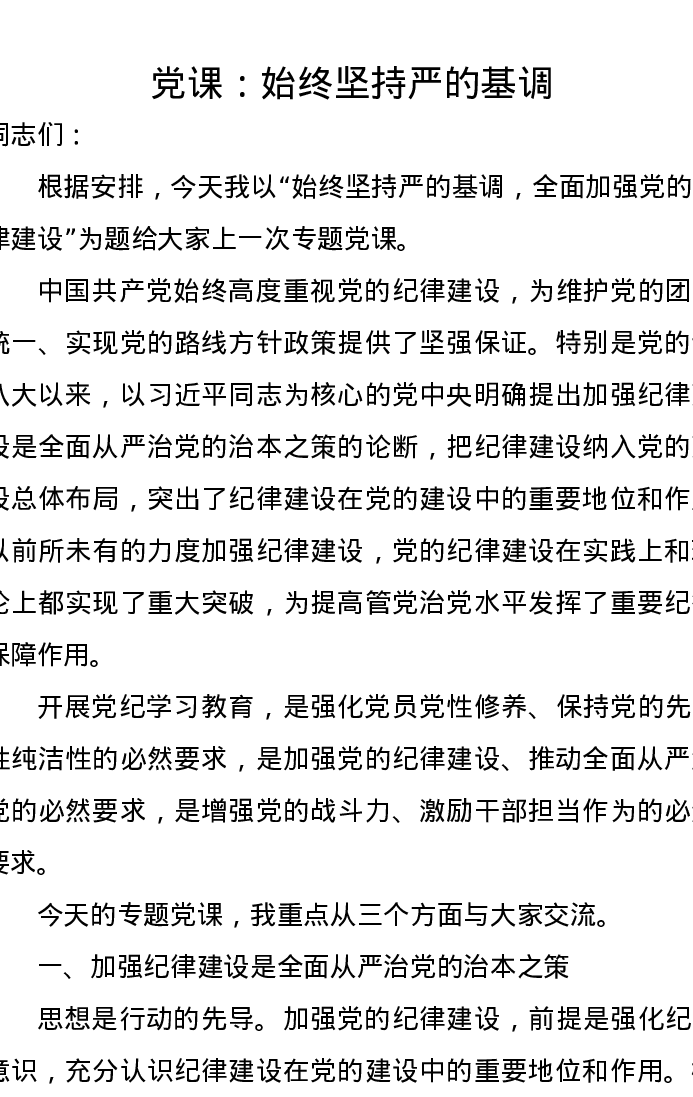党课讲稿:始终坚持严的基调