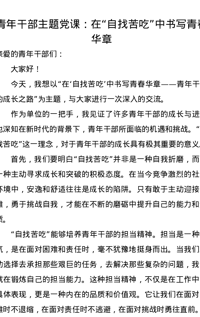 青年干部主题党课:在“自找苦吃”中书写青春华章