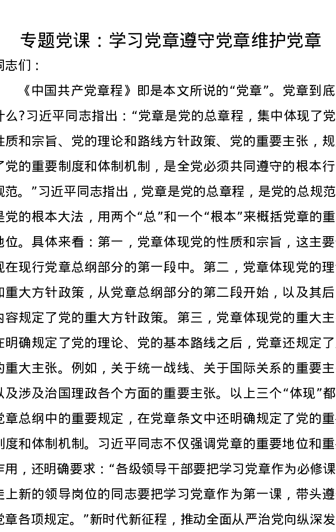 专题党课:学习党章遵守党章维护党章