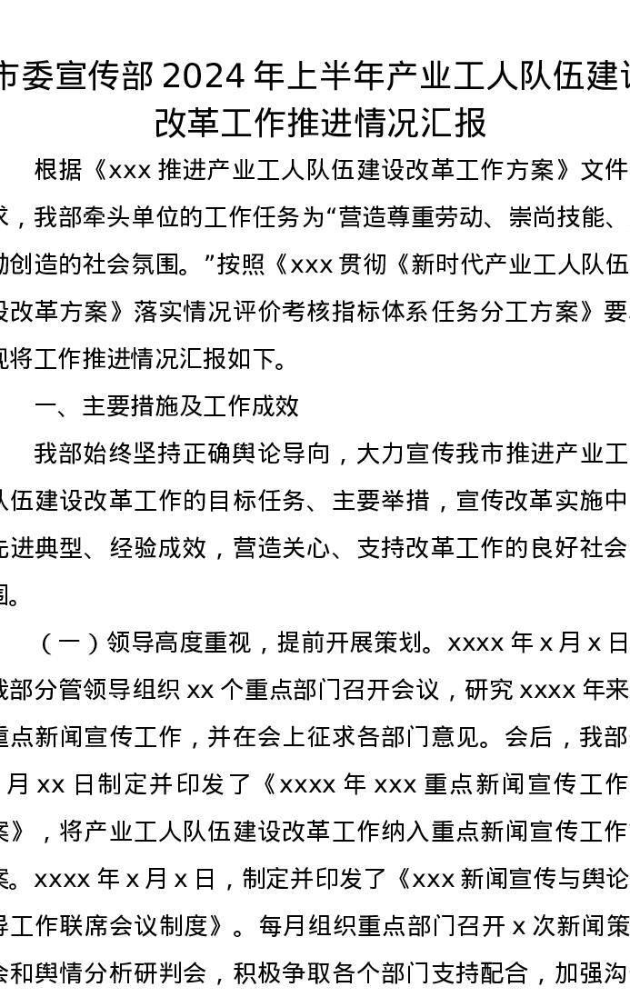 市委宣传部2024年上半年产业工人队伍建设改革工作推进情况汇报