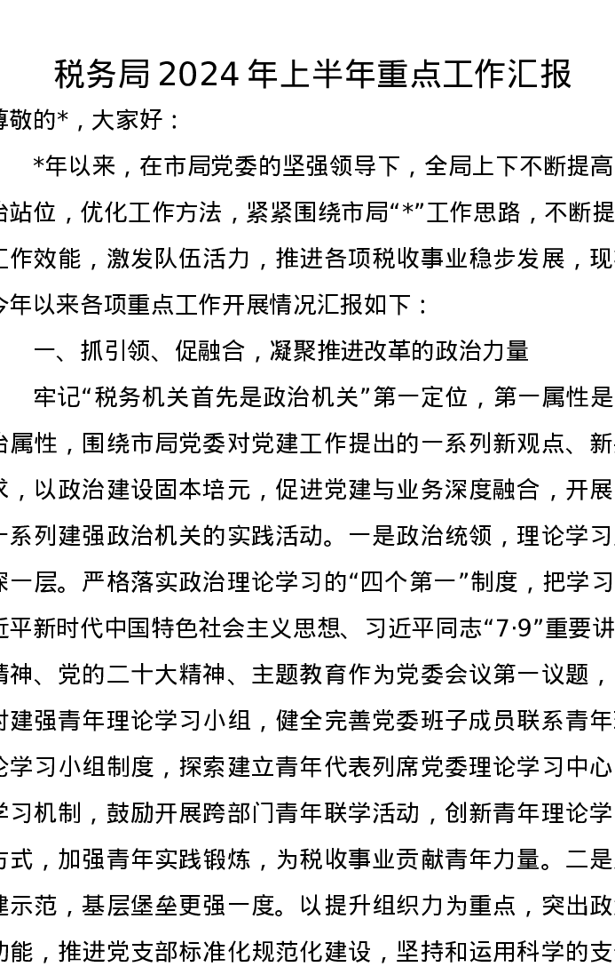 税务局2024年上半年重点工作汇报
