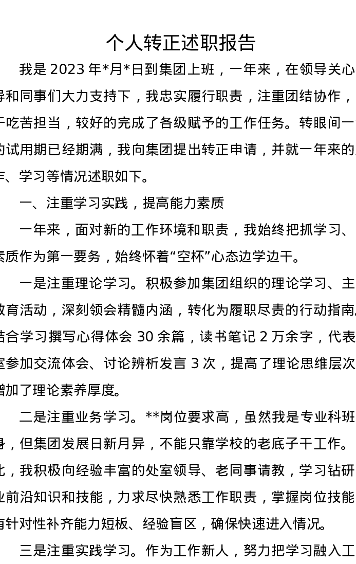 个人转正述职报告