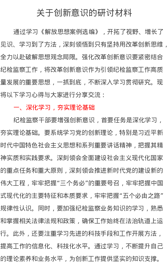 关于创新意识的研讨发言材料