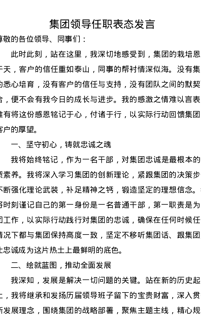 集团领导任职表态发言