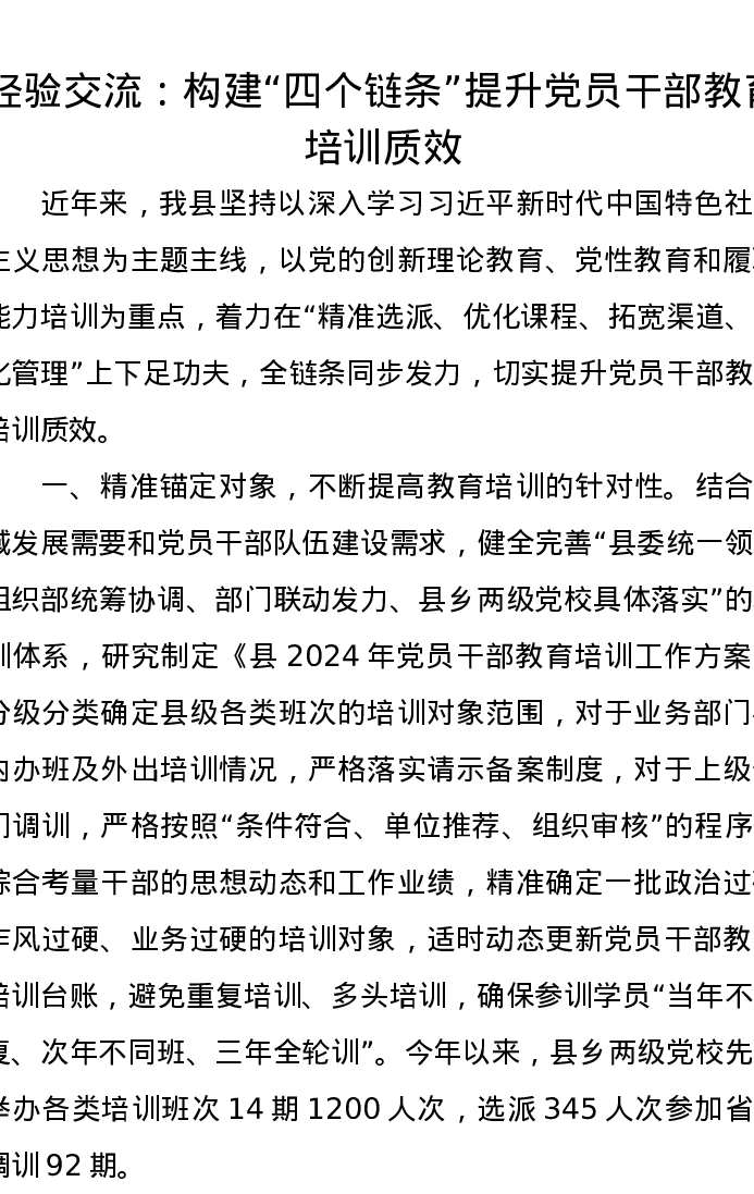 经验交流:构建“四个链条”提升党员干部教育培训质效