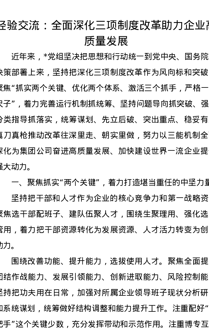 经验交流:全面深化三项制度改革助力企业高质量发展