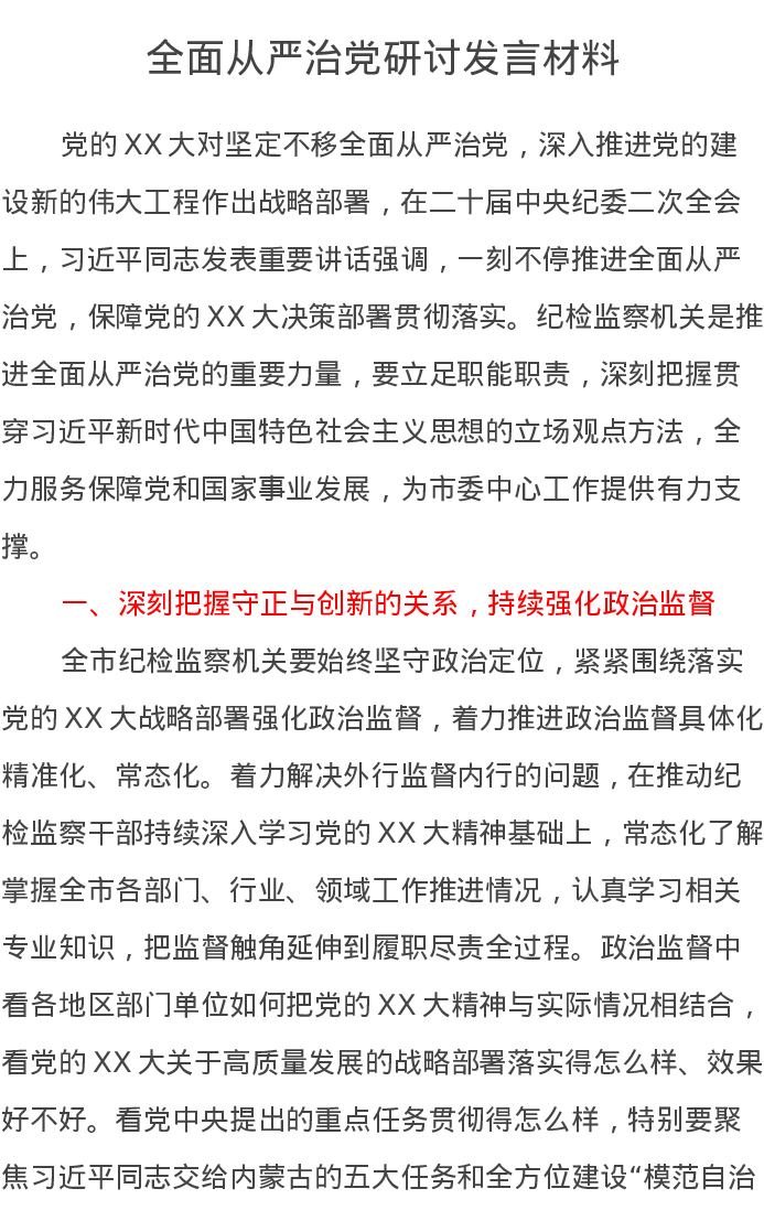 全面从严治党研讨发言材料